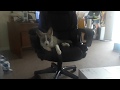 First sorry, I had to clean the camera lens so it is a little fuzzy... I got up for 20 seconds to look at the A/C and when I came back the fluff ball was on the top of the chair trying to jump on the computer table, then he proceeds to take control of the chair and not let me sit to work!!! The nerve of some foxes!!!